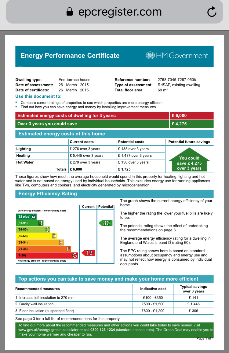 4.) Once all the works are complete, book your EPC assessor. Many can be found online locally, so shop around (today’s price for a 3-bed house was £39)